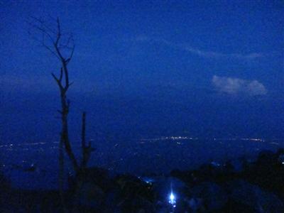 จากนั้น พวกเรานั่งหน้าเต้นท์พูดคุยกัน ฟังเพลงจากกีต้าร์จากเต้นท์ถัดออกไป อากาศกลางคืนเย็นกำลังสบาย ไม่หนาวมาก เรากางเต้นท์บริเวณหน้าผา มองลงไปด้านล่าง จะเห็นแสงไฟระยิบระยับ เหมือนมีท้องฟ้าที่เต็มไปด้วยดวงดาวอยู่ด้านล่างเลยค่ะ สวยงามม๊ากขอบอก แต่มีสิ่งที่ผิดหวังมากสำหรับฉัน อยากมาภูทับเบิกเพื่อสัมผัสอากาศหนาวๆ เหมือนเดิม แต่ไม่หนาวเท่าที่ควรเลย แค่เย็นสบายๆค่ะ พวกเราเข้านอนตอนสามทุ่มกว่าๆ