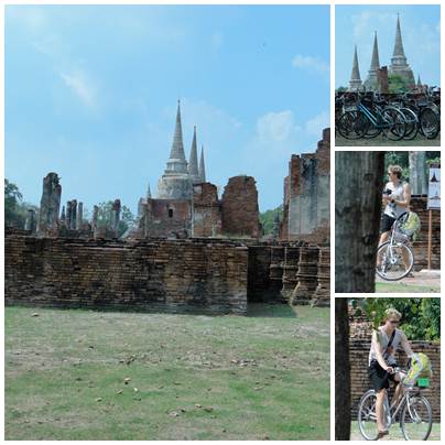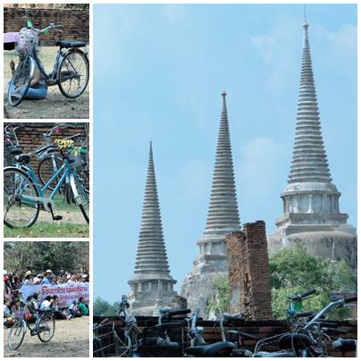ขบวนจักรยานพากันไปชมวัดโลกยสุธา(วัดพระนอน) ซึ่งมีความยาว 42 เมตร ประดิษฐานกลางแจ้ง ซึ่งก็เกิดจากการเผาบ้านเผาเมืองอีกนั่นแหละ จากวัดพระนอนเราไปวัดพระศรีสรรเพชญ์ วิหารมงคลบพิตร (ซึ่งที่นี่ไม่รู้ว่าฉันจะได้บุญหรือได้บาปกันแน่) ก่อนจะเข้าไปไหว้พระฉันตั้งใจว่าเมื่อไหว้พระเสร็จจะมาบริจาคเงินให้น้องนักเรียนกลุ่มหนึ่งที่มาขอบริจาคเงินเพื่อนำไปซื้อเครื่องคอมพิวเตอร์ให้กับโรงเรียน เมื่อไหว้พระเสร็จลงมาด้านล่างฉันเปิดกระเป๋าหยิบเงินหนึ่งร้อยบาทไว้ในมือ ขณะกำลังปิดกระเป๋าสตางค์นั้น ฉันรู้สึกได้ถึงแรงกระชากของเงินที่อยู่ในมือซึ่งทำให้ฉันกำไว้แน่นกว่าเก่าพร้อมเสียงร้องเฮ้ย! ในขณะเดียวกันก็ก้มมองพร้อมเสียงดุไปว่าอย่าทำนิสัยเช่นนี้ในวัดนะ (แล้วตรูทำไปได้ไงเนี่ย) หลายสายตามองมาที่ฉัน แต่ฉันหันหลังกลับพร้อมเสียงดุอีกว่าเดี๋ยวฉันก็ตีเด็กในวัดหรอก เด็กคนนี้ยังคงยกมือไหว้เพื่อขอเงินแต่เมื่อความรู้สึกมันเสียไปแล้วฉันก็คงไม่ให้เพื่อเป็นเยี่ยงอย่าง ฉันหย่อนเงินที่ตั้งใจในกล่องพร้อมเดินจากมา พร้อมคิดไปว่านี่เมืองท่องเที่ยว เมืองมรดกโลกนะเนี่ย แต่ที่ไหนๆ ก็คงมีคนเช่นนี้เสมอ ถ้าตราบใดคนในโลกยังคงมีความไม่เท่าเทียม คนในโลกยังคงเห็นแก่ตัว และคนในโลกยังแก่งแย่งแข่งดีกัน (ฉันซึ่งยังเป็นคนดีไม่พร้อมก็คงทำได้เท่านี้)
