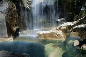 ธาราไหลบ่าท้นบนเหลี่ยมเขา สะท้อนเงาสดใสบนปลายแสง แซมด้วยเขียวใบไม้ให้เรี่ยวแรง ร่วมตบแต่งด้วยรุ้งอย่างรุ่งเรือง