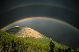 ริ้วรุ้งทองทอดท้าเวหาหาว สะพรั่งพราวสีสันอันสดใส เป็นโค้งครอบเนินเขาลำเนาไพร แสนสุขใจคราจ้องมองรุ้งเรียง