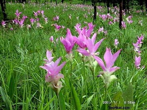 ผกาก้านเกษรอันอ่อนหวาน แย้มเบ่งบานหยาดย้อยริมรอยหิน กลีบเรียวแหลมแซมชมพูอยู่บนดิน มิสร่างสิ้นสีสันอันแพรวพราย
