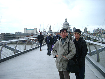 วันที่สอง - พุธที่ 25 เมษายน วันนี้เราไปที่ Cambridge โดยนั่งรถไฟไป เราได้เห็นบ้านเมืองที่สวยงาม คล้ายกับสมัยที่ยังมีอัศวินอยู่ วันนี้โชคดีที่อากาศค่อนข้างดีที่ไม่มีฝน เราได้เดินเล่นไปรอบๆเมือง เมือง Cambridge ซึ่งเป็นเมืองที่มี High School และมหาวิทยาลัยตั้งอยู่หลายแห่ง ผู้คนส่วนใหญ่ที่เราเจอะเจอก็เป็นนักศึกษา หลากหลายเชื้อชาติ นอกจากบ้านเมืองที่คลาสสิคแล้วยังมีธรรมชาติและความร่มรื่นของต้นไม้เมืองหนาว และคลองที่ไหลผ่านเมืองด้วย เรากลับมาถึงลอนดอน ตอนสี่โมงเย็นและไปต่อที่วิหาร St. Paul วิหารขนาดมหึมาที่ตั้งอยู่ใจกลางกรุง ข้างๆมีการรื้อถอนตึกสูงที่อยู่รอบๆ เนื่องจากทางการเห็นว่าบดบังความสำคัญของวิหารไป ต่อมาเราได้เดินผ่าน Millenium Bridge สะพานที่สร้างขึ้นฉลองปี 2000 เพื่อไปยัง Tate Modern 2002 สถานที่แสดงงานศิลปะยุคใหม่ สถานที่ค่อนข้างสวยงาม ระหว่างทางที่เดินไปนั้น บรรยากาศรอบๆแม่น้ำ Tames เต็มไปด้วยความมีชีวิตชีวาและสีสันของการสังสรรค์หลังเลิกงานของคนหนุ่มสาวตามร้านอาหารและภัตตาคารต่างๆ เราเดินกันไปที่ London Eye เพื่อจะขึ้นไปชม ซึ่งเราเสียค่าผ่านประตูกันคนละประมาณ 10 ปอนด์ บน London Eye นั้นทิวทัศน์สวยงามมาก มองเห็นสถานที่สำคัญต่างๆมากมาย เห็นขอบฟ้าที่โค้งกลม เห็นพระอาทิตย์กำลังจะตก เห็นชีวิต ความเป็นไปของแม่น้ำ Tames เรารู้สึกตื่นเต้นและประทับใจ รู้สึกเหมือนว่ากำลังลอยอยู่บนอากาศ และเราจบการเที่ยวของวันนี้ที่ภัตตาคารเป็ดปักกิ่งแห่งหนึ่งในย่านโซโห