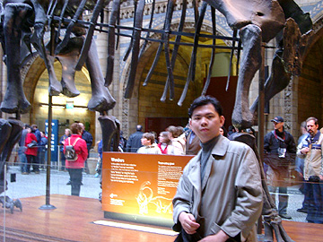 วันที่สาม - พฤหัสที่ 26 เมษายน วันนี้มีความตั้งใจอย่างแรงสูงที่จะไปที่ Meseum ต่างๆของอังกฤษ เนื่องจากตอนนี้รัฐบาลเปิดให้เข้าชมได้ฟรีเพื่อส่งเสริมการท่องเที่ยวและเราได้รู้มาถึงกิตติศัพท์ความอลังการของพิพิธภัณฑ์ที่นั่น เราไปกันที่ Natural History Meseum ที่ที่เก็บโครงกระดูกไดโนเสาร์เอาไว้ เราตื่นตาตื่นใจตั้งแต่แรกที่เข้าไป เพราะเจอโครงกระดูกไดโนเสาร์ตัวใหญ่ตั้งตระหง่านอยู่ข้างหน้า และเมื่อเดินชมไปเรื่อยๆก็ยิ่งประทับใจมากขึ้น เพราะในพิพิธภัณฑ์นี้เก็บทุกๆอย่างที่เกี่ยวกับประวัติศาสตร์ความเป็นมาของโลกเรา ทุกๆอย่างจริงๆและใหญ่มาก เรียกว่าต้องเดินกันทั้งวันเพื่อชมให้ได้ละเอียด มีห้องแสดงอยู่หลายร้อยห้อง ห้องหนึ่งที่ประทับใจคือห้องที่แสดงถึงขนาดของสัตว์โลก โดยการทำหุ่นจำลองปลาวาฬสิน้ำเงินทั้งตัวเท่าของจริงเปรียบเทียบกับสัตว์อื่นๆเช่นช้าง ม้า หมี ห้องนี้ใหญ่มากขนาดที่ไม่สามารถถ่ายรูปได้หมด หลังจากเดินชมจนหมดแรง เราก็ไปเดินต่อที่ Harrods ห้างสรรพสินค้าที่โด่งดังของอังกฤษ ซึ่งเราตั้งใจไว้ตั้งแต่ที่แรกว่าจะไม่ซื้ออะไรเพราะของแพง แต่ดูไปดูมาก็มีบางอย่างที่น่าซื้อเก็บเอาไว้ จึงเสียเงินไปพอสมควร จากนั้นเราก็ได้ไปที่ Covert Gerden Market ที่ที่ขายของต่างๆที่เป็นงานฝีมือ และเราก็พักทานอาหารที่นั่น ในตอนบ่ายๆเย็นๆ เราไปที่ Tate Modern อีกครั้งแต่ครั้งนี้เข้าไปข้างในเพื่อดูงานศิลปะ แต่ดูไปดูมาแล้วไม่ค่อยประทับใจเท่าไร เพราะดูไม่รู้เรื่อง ภาพส่วนใหญ่จะเป็น Abstract ค่อนข้างมาก เมื่อออกมาจาก Tate Modern แล้วเราก็ไปที่ร้านหนังสือ Water Stones ร้านหนังสือที่ใหญ่มากอยู่แถว Piccadilly Circus ที่นั่นมีหนังสือมากมายที่หายากในเมืองไทย มีหลายเล่มที่เล็งเอาไว้เผื่อซื้อตอนจะกลับมา และเหมือนเดิม เราก็ไปทานอาหารเย็นที่โซโห ดูเหมือนว่าเป็นที่ที่มีอาหารให้ทานใกล้เคียงกับเมืองไทยที่สุด