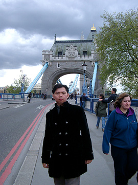 วันที่สี่ - ศุกร์ที่ 27 เมษายน วันนี้ตอนเข้าเราไปเดินหาหนังสือด้าน Art กันที่ Eustion ตามคำแนะนำของคนรู้จัก ฝนตกลงมาเป็นระยะ หลังจากเลือกหนังสือกันสักพัก เราก็ไปต่อที่ Leicester Square ศูนย์รวมของร้านค้ามากมายอยู่ห่างจาก Piccadilly Circus ไม่มาก ซึ่งเราใช้เวลากันนานพอสมควรในการเดิน Shopping ตกตอนบ่าย ก็ไปที่ Tower Bridge มีนักท่องเที่ยวมากมาย เดินไปถ่ายรูปและอิ่มเอิบกับบรรยากาศรอบๆแม่น้ำ Tames เมื่อมองไปจากสะพาน เห็นเรือรบลำใหญ่จอดอยู่และเห็นตึกข้างๆรูปทรงทันสมัยมาก เมื่อสอบถามจากเพื่อนจึงได้ความว่าเป็นที่ทำการใหม่ของกรุงลอนดอน ดูตอนแรกนึกว่าตึกเกี่ยวกับธุรกิจอะไรที่ไฮเทค วันนี้กลับที่พักกันค่อนข้างเร็ว เพราะตอนเย็นเพื่อนที่นั่นทำอาหารเย็นเลี้ยง ซึ่งเราค่อนข้างโชคดีที่ได้เห็นด้วยว่าชีวิตของเด็กนักเรียนไทยที่อังกฤษนั้นใช้ชีวิตอย่างไร ทำอะไรบ้าง นอกจากต้องประหยัดแล้ว ยังต้องหาเงินจากทางอื่นด้วย เช่นการสอนพิเศษ การทำงานที่ร้านอาหาร เพื่อนเราคนนี้เรียนการสี Violin อยู่ที่มหาวิทยาลัยทางด้านดนตรีแห่งหนึ่งที่นั่น มีชื่อเสียงมากในวงการดนตรี และเปิดการแสดงคอนเสริต์ในเมืองไทยอยู่เนืองๆเมื่อกลับมาประเทศไทย