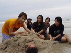 นึกว่าจะเวียนเที่ยนกันชายหาด วันวิสาขะกลายเป็นตั้งวง อิอิ สาว ๆ มากกว่าหนุ่ม ๆ แถมฝ่ายหนุ่ม ยังแก่ซะอีกฝ่ายสาวคงผิดหวังกันบ้างละ งานแห่ป้ายคราวนี้ท่านผู้ชมน้อยไปหน่อย แต่ก็ในฐานะที่ไม่ได้ไปด้วยดูตามรูปอ่านตามเรื่องตามที่แจมกัน รู้สึกกว่า พี่ปราย ของน้อง ๆ จะน่ารักที่สุดคนดูยังนึกรักเลยนะ หัวเรือ อิม หายไปไหนก็ไม่เห็นเลย อิอิ