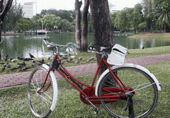 เกือบจะซ่อนตาดำอยู่แล้ว ทุ่นมันเริ่มขยับ ( ตื่นเต้น ไม่ได้ตกปลานาน )สักพักจมหายรีบตวัดคันขึ้น เอ๊...ทำไมเบาจังหว่าปลาตัวที่อยู่ปลายสายลอยขึ้นมาจะตกใส่หัวอยู่แล้ว เป็นปลาตะเพียนตัวเบากว่าไฟแช็ค รีบปลดตัวเบ็ดออกจากปากมัน กลัวขวดนมมันหลุดหาย ( นี่ถ้านั่งตกอยู่กับเพื่อน มันต้องแขวะว่า เอาขึ้นมาทำไม ยังไม่อดนมเลย ) แล้วก็ปล่อยมันลงน้ำไป นั่งอยู่อีกสักพัก ได้แต่ตัวขนาดนี้เกือบจะหมดความอดทนอยู่แล้ว อยู่ๆทุ่นถูกดึงหายไปอย่างรวดเร็ว รีบวัด....ผึง สายขาด สงสัยตัวโต( ปลาหลุดเขาบอกว่ามักตัวใหญ่กว่าที่ตกได้เสมอ ) แล้วจะทำไงว่ะนี่ตัวเบ็ดมีอยู่ตัวเดียวซะด้วย คงต้องชวนคุณแดงกลับไปเอาอุปกรณ์ที่บ้านแล้วละ โห......แต่ว่ากลับไปนี้ก็สามหมายิ้มเลย เอาไงไดีหว่า ไปก็ไปว่ะ บ่ายสองกว่า ไอ้บ้าคนนึงขี่จักรยานกลางแดดเปรี้ยงๆ เกือบ 4 กม. ละมั้งไปเอาตัวเบ็ดมานั่งตกปลาเนี่ยน่ะ (คุ้มไหมหว่า)