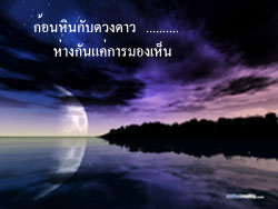 ถึงองค์รักษ์ของฉัน ขอบคุณนะค่ะสำหรับคำชม ก้อนหินยังคงมั่นคงไม่ว่าดวงดาวจะเป็นอย่างไร ใช่แล้วจ๊ะ..... เค้าบอกกันว่า การที่เราอยู่ข้าง ๆ ใครสักคนในทุก ๆวัน บางที อาจจะไม่ซึ้งใจ เท่ากับการที่เราอยู่ข้าง ๆ เขาในหนึ่งวัน แต่เป็นวันที่เขากำลังต้องการใครสักคน