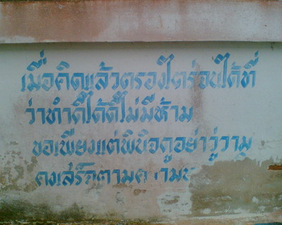 อิ่มอีกมื้อแล้วเนอะ ........ ไปไหว้พระกันดีกว่า พี่ตูนพามาชมและกราบพระที่วัดบางนอน ... ซึ่งก็ทัวร์กันอยู่สักพัก .... และบังเอิญ ..... พี่เสียงเจือแจ้วของพี่สาวคนดี ... บอกให้มาดูกลอนข้าง ๆ ศาลาว่า ... ประโยคจบคืออะไร เนื้อกลอนบทแรกไม่มีปัญหาคือมีครบหมดทุกประโยคดังนี้ค่ะ ก่อนทำสิ่งใดใจต้องคิด ถูกหรือผิดทำอย่างนี้ดีหรือไม่ ถ้าเห็นว่าไม่ดีมีโทษภัย อย่าทำไปส่งส่งคงไม่งาม ....