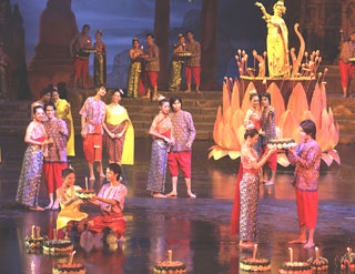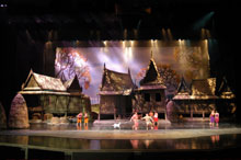 บนเวที มีแม่น้ำ..ประเพณีที่ขาดไม่ได้ คือลอยกระทง มีการให้คนดูได้ลงไปลอยกระทงด้วย.. มีชีวิตความเป็นอยู่แบบไทยๆ อาบน้ำในแม่น้ำ (แต่แปลก คนเมื่อก่อนทำไม อาบน้ำไม่ถอดกางเกงหว่า ??) อาบแบบรวดเร็ว... แม่บอกว่า..เขาอาบน้ำเหมือนเราเลยนะน่ะ " ...อาบน้ำฉบับย่อ..."
