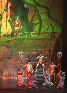เวลาเดินไปอย่างรวดเร็ว ทุกการแสดงสะกดให้หยุดมองด้วยความตะลึง นั่น..นางมณีเมขลาร่ายรำโดยใช้ลูกแก้วที่ส่องแสงเรืองรอง หลอกล่อรามสูร แล้วล่องลอยขึ้นทะยานสูงท้องฟ้าชั้นดาวดึงส์ที่มีเหล่าเทพยดาบรรเลงเพลงขับกล่อมอยู่บนสรวงสวรรค์ มาถึงตอนนี้รู้สึกเหมือนได้ดูภาพเขียนชั้นดีของเหล่าศิลปินมีชื่อ