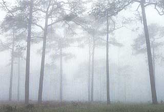 ป่าสนยามเช้าที่สายหมอกปกคลุมขาวโพลนดูเหน็บหนาวปนโรแมนติก