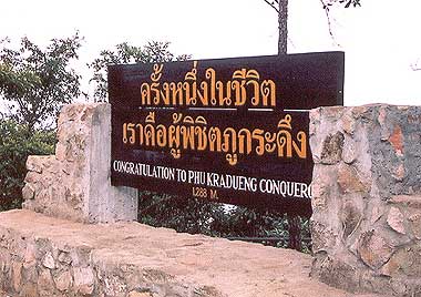 ป้ายผู้พิชิตภูกระดึง คือความภาคถูมิใจที่สุดของนักท่องเที่ยวค่ะ