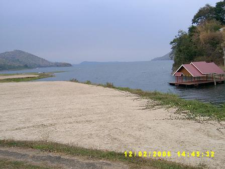 ภาพท้องน้ำ ที่ อ.ศรีสวัสดิ์ มองเห็นเกาะเล็ก เกาะน้อย โดยมีเทือกเขาอยู่ด้านหลัง เราสงบใจอย่างประหลาด