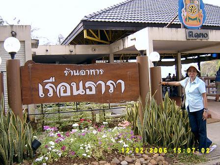 **ปลาทับทิมทอดกระเทียม ยำเห็ดหูหนูขาว ผัดผักคะน้า+ปลาเค็ม ต้มยำปลายี่สก ข้าว 1 โถ เป๊บซี่**..ตอนสั่งอาหาร กำลังหิวได้ที่พอดี ผัดผักมาถึงก่อน พร้อมข้าว จากนั้นก็ต้มยำ ท้ายสุดที่ต้องตะลึง..ปลาทับทิม.. อุแม่เจ้า ปลาตัวนี้คงเกือบสองกิโลกระมัง .. พวกเรานั่งมองหน้ากันเลิกลั่ก แต่เรารู้ว่า สิ่งที่อยู่ในใจของทุกคนก็คือ จะกินหมดมั๊ยเนี่ย.. ใช่แล้ว มันเกินกำลังและพื้นที่ในกระเพาะ และด้วยความประหยัด (งกมั๊ง) อาหารที่พอจะเก็บเป็นเสบียงมื้อถัดไป (ไม่อยากบอกเลยว่า ของเหลือ) พวกเราให้เขาจัดใส่ห่อ ปลาทับทิมทอดตัวเบ้อเร่อ เหลือครึ่งตัว ผัดผักก็เหลือ ส่วนอีกสองอย่าง ก็พยายามวิดเข้าท้องจนหมด ...ไม่ไหว ไม่ไหว .. แน่นไปหมด มองหาอีโน ก็ไม่มี พวกเราเดินชมสวนดอกไม้โดยรอบ ...ก่อนจากมา ก็สั่งอาหารเพิ่มใส่กล่องไว้เผื่อสำหรับมื้อเย็น ( กลัวอด... ได้แต่อยาก)