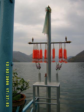 บนแพขนานยนต์ เราพบสิ่งนี้อยู่มุมซ้ายด้านหน้า เขาเรียกว่าแม่ย่านางเรือ หรือเปล่าก็ไม่รู้ เหมือนศาลเล็ก ๆ ไว้เป็นที่สักการะของชาวเรือ เท่าที่มองด้วยสายตา เรารู้สึกถึงความขรึมความขลัง