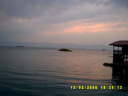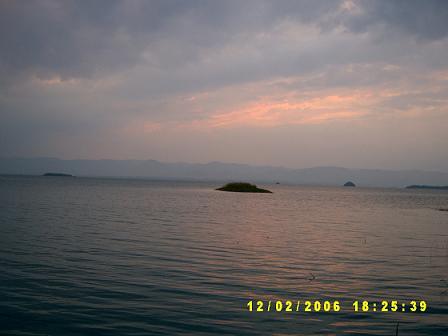 แล้วไงล่ะ วันทั้งวันก็ไม่เห็นพระอาทิตย์ แล้วจะเอาพระอาทิตย์ที่ไหนมาค่อย ๆ หล่นปุ๊ ลงทะเลสาป นี่ ๆๆๆ แล้วคืนนี้จะเห็นดวงจันทร์หรือเปล่าก็ไม่รู้ ฟ้าออกจะครึ้มขนาดนั้น เสียราคาคุยหมดเลย .. เฮ้อ !!