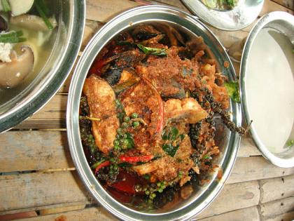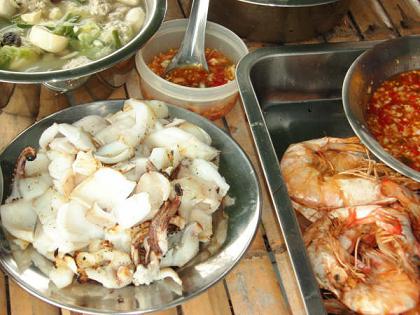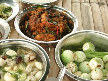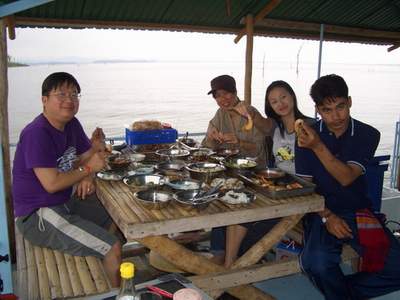 ไม่ว่าจะเป็นผักลวก ผักสด ปลาทูตัวย่อม กับน้ำพริกกะปิ ที่เจ้าของแพจัดเตรียมไว้ต้อนรับพวกเรา มื้อนี้ ทั้งอิ่มและตื้นตันใจ .. แอบกระซิบบอกหน่อยว่า ปลาทูน่ะ ความจริงเขานับไว้แล้ว คนละตัว ทำไมเหลือสามตัว ใครที่ยังไม่ได้หม่ำ .. ต้องโดนปรับซะให้เข็ด.. ฮา ..