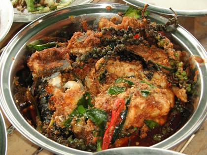 แต่ที่ท่าลงแพมีร้านขายของชำ และทางร้านเขาก็มีขายปลาด้วย ดีนะ ..ที่ไปถามเขาว่า ถังอะไร เขาก็บอกว่าปลา...เขาขายปลา .. เราดีใจมาก อย่างน้อย เราก็จะมีปลาแล้วเฟ้ย ..จากนั้น ก็รีบโทรไปบอกหมอ ตอนนั้นหมอขึ้นเส้นศรีสวัสดิ์มาแล้ว ไม่ไกลจากเราสักเท่าไหร่..หมอบอกให้ซื้อปลา .. เอาล่ะสิ ปลาอะไรดี ? แหม๊ หมอนี่ น่าตีจัง ปล่อยให้เราคิดเอง..สุดท้ายก็ซื้อปลากด(ยักษ์) มาสองตัว ปลาที่นี่ สงสัยจะพันธุ์ยักษ์ ตัวโตนักเชียว