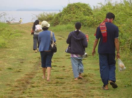 จะให้พี่ไปรอตรงไหน บอกด้วยนะ เอาอย่างนี้ดีมั๊ยคะพี่ รอที่เชิงบันไดสถานีรถไฟฟ้า อนุสาวรีย์ ด้าน รพ. ราชวิถี อืม ! กี่โมง ซักเจ็ดโมงครึ่ง เราจะได้ออกเดินทางตั้งแต่เช้า เผื่อแวะเที่ยวรายทางไปด้วย ได้ ได้ แล้วเจอกัน วันเสาร์..ก่อนวันเดินทาง เราแวะไปซุปเปอร์มาเก็ตละแวกบ้าน เพื่อซื้อของบางอย่าง มันไม่ใช่เรื่องง่ายสำหรับคนที่ทำอาหารไม่ค่อยเป็น แต่ต้องรับหน้าที่จัดเตรียม เอาล่ะ ซื้ออย่างละขวดเล็ก ๆ ละกัน ขาดเหลือยังไง ก็เซเว่นข้างทาง เราคิดในใจ ต้องไม่ลืมน้ำส้มสายชู หมอบอกว่าจะทำข้าวต้มปลาให้ทาน เรายิ้ม เมื่อนึกถึง ก่อนเดินไปชำระเงินที่แคชเชียร์ ก็ไม่ลืมที่จะหยิบมาม่าแพคใหญ่.. ไม่อดตายแน่นอน ค่ำวันนั้น เราจัดกระเป๋าเดินทางอย่างสบาย ๆ โดยไม่ลืมที่จะเอาเสื้อตัวที่มีคนส่งพัสดุมาให้ พร้อมกับหนังสือเรื่องเท่าดวงอาทิตย์ ใส่ลงไปด้วย เราเข้านอนหลังจากที่คอนเฟริมท์กันอย่างเป็นมั่นเหมาะกับเพื่อน ๆ อีกครั้ง ..เราฝันอย่างเป็นสุข เช้าวันอาทิตย์..เราต้องไปจ่ายตลาดก่อนไปรับเพื่อนที่อนุสาวรีย์ แวะซื้อไข่ไก่มาหนึ่งแพ๊ค ทำอะไรกินอะไรดีว๊า..ผัดผักละกัน ง่ายดี เออใช่ ! ซื้อปีกบนไก่ด้วยดีกว่า คิดแล้วก็เดินพึ่บ ๆ ไปทำเก๊กหน้าร้านผักแล้วบอกแม่ค้าว่า จัดเครื่องต้มยำให้ชุดนึงสิ แม่ค้าบอกว่า เอาเลย หยิบได้เลย . .. โธ่ถัง ! มันต้องมีอะไรบ้างเนี่ย เอาเป็นว่า ตอนเดินปุเลงปุเลงมาขึ้นรถ เราก็หอบหิ้วมาเต็มสองไม้สองมือเช่นกัน ยังพอมีเวลาที่จะไปยังจุดนั้น เช้าวันนี้การจราจรยังไม่ติดขัดสักเท่าไหร่ เราเหลือบมองผ้าห่มและหมอนที่หอบมาด้วย .. ก็นึกขันในใจว่า เพื่อนจะล้อมั๊ยนะ ว่าเราติดผ้าห่ม