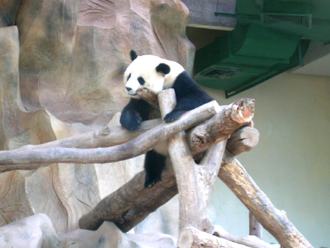 ลงมาจากดอยอินทนนท์แล้ว .. ชมอักษรก็มุ่งหน้าไปยังสวนสัตว์เชียงใหม่ .. โดยต้องรีบไปให้ทัน 4 โมงเย็น .. ซึ่งเป็นรอบสุดท้ายที่เจ้าหน้าที่จะพาหมีแพนด้าออกมาให้ได้เห็นชัด ๆ .. โชคดีที่ไปทันเวลา .. เมื่อเข้าไปถึง ก็ได้เวลาพอดี .. หลินฮุ่ยซึ่งเป็นหมีเพศเมียออกมาก่อนตัวแรก .. เธอค่อย ๆ เยื้องย่างออกมา .. แล้วเธอก็ .. อึ !! .. เหอ ๆๆ หลังจากที่เธออึเสร็จ .. ก็ก็ค่อย ๆ คลานขึ้นไปนอนด้านบน ..