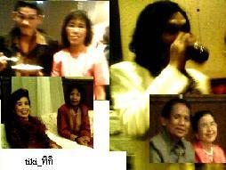 ตอนค่ำ เปลี่ยนแปลง...กว่าจะเลือกเสื้อผ้าออกมาได้ ต้องไปขอเตารีดแม่บ้านยืนรีดอยู่ทางเข้าออกลิฟท์ เพราะชุดผ้าไหมที่เตรียมมาสีน้ำตาลแก่นั้นลูกบ่นว่า สีเข้มแก่เกินไป จึงต้องดึงผ้าไหมแพรวาสีส้มมารีด ใหม่ด้วยมันยับยู่ยี่ เอ้า เปลี่ยนตำแหน่งไปเป็นพนักงาน รีดผ้าหน้าลิฟท์เสียแล้ว(ขนาดว่าเตรียมพร้อมแล้วยังลืม เตารีดไอน้ำระหว่างเดินทางไปได้ ) กว่าจะแต่งกายงามลงมาได้ มันก็หกโมงกว่าเข้าไปแล้ว หลานทางฝ่ายพี่สะไภ้ รอคอยอยู่ด้านล่างเพื่อกวาดต้อน ทุกคนขึ้นรถไปกันจนได้ (เฮ้อ ทุลักทุเลพอประมาณนะ)
