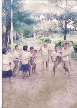 . สภาพของโรงเรียนเป็นโรงเรียนระดับประถมศึกษาเล็ก ๆ อยู่ในหมู่บ้านที่ความเจริญยังมาไม่ถึง เพราะอยู่ติดชายแดน มีอาคารเรียนสองหลังโทรม ๆ และเมื่อสอบถามถึงงบสนับสนุนการศึกษาที่ได้รับจากภาครัฐ ก็ได้รับคำตอบว่า "ลำพังเงินจากภาครัฐที่มาอุดหนุน เมื่อเทียบกับจำนวนนักเรียนรายคนต่อปี น้อยนิดเหลือเกิน ค่าอาหารกลางวันสำหรับเด็กแต่ละคนอยู่ในอัตรา ห้าสลึง/คน ส่วนค่าน้ำ ค่าไฟ และค่าใช้จ่ายเบ็ดเตล็ดรวมอยู่ในเงินก้อนเดียวกัน เมื่อไม่เพียงพอกับค่าใช้จ่าย ต้องเจียดเงินเดือนของตนเองลงไปสบทบ"