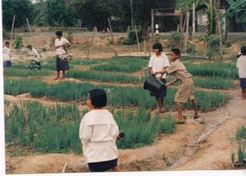 และเมื่อถามถึงวิธีการเรียนการสอนว่าเป็นอย่างไร คำตอบที่ได้รับยิ่งทำให้เกิดภาพที่แตกต่างอย่างมาก นักเรียนที่โรงเรียนบ้านตานวนต้องปลูกผัก, เลี้ยงเป็ดไก่, เลี้ยงปลา, เลี้ยงกุ้ง, ปลูกหม่อน และเลี้ยงไหม ฯลฯ และน้อยคนที่จะมีโอกาสศึกษาต่อเมื่อจบชั้นประถมหก เขาจึงมีความเห็นว่า มันเป็นความจำเป็นอย่างยิ่งที่จะให้เด็ก ๆ เรียนรู้ที่จะช่วยเหลือตนเอง เรียนรู้เพื่อที่จะอยู่รอดในสภาพวิถีสังคมที่เป็นอยู่