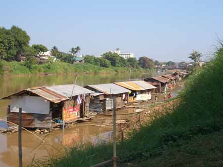 เย็นนี้จะพาไปกินข้าวบนแพ .. บรรยากาศโรแมนติกมากๆ รับรองต้องชอบแน่ ฉันระลึกถึงคำที่เจ้าบ้านบอกไว้เมื่อวาน บางชีวิตต้องอยู่บนแพด้วยเหตุผลว่ามันคือ บ้าน หากแต่อีกหลายชีวิตพยายามกระเสือกกระสนลงแพเพียงเพื่อเปลี่ยนบรรยากาศ ชีวิตที่จำต้องอยู่บ้านบนแพเขาจะคิดอยากเปลี่ยนบรรยากาศ มากินข้าวในบ้านบนดินมั่งมั๊ยนะ? .. ฉันนึกสงสัย .. ฉันขับรถเลียบแม่น้ำน่านไปเรื่อยๆ จนพบว่าสุดถนนเส้นนี้คือวัดจันทร์ตะวันตก ริมแม่น้ำน่านในบริเวณนี้มีแพหลังใหญ่จอดเลียบริมน้ำอยู่หลายหลัง แพแต่ละหลังมีสองชั้นและใหญ่โตกว่าแพบ้านที่ฉันผ่านมาเมื่อสักครู่มากมายนัก มีป้ายชื่อร้านตัวโตที่ทำด้วยนีออนติดอยู่บนหลังคาแพ หากยามกลางวันมันดูเหมือนซากไม้เก่าๆ ที่รกระเกะระกะไปด้วยโต๊ะเก้าอี้ หากยามค่ำคืน .. แสงสีมันคงเย้ายวนตานัก บ้านแพหลังเล็กๆ .. หากมีเพียงไฟสว่างจากแสงตะเกียงคงเพียงพอ ..