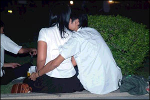 คุณเพลง-ทิชากร แพรวก็อยู่หอพักค่ะ เลือกที่จะอยู่คนเดียว เพราะพอที่จะจ่ายค่าหอคนเดียวได้ แถวนั้นมีบ้านญาติอยู่เยอะด้วยค่ะ ก็เลยไม่ค่อยลำบากอะไร มีเพื่อนหลายคนค่ะ ที่อยู่กันแบบสามี ภรรยา เพื่อนแพรวก้เยอะค่ะ โดยมากแล้ว พ่อแม่จะไม่รู้ หรือที่รู้ก็มี แต่น้อยค่ะ เหตุผลอย่างอื่นก้ไม่รู้ค่ะ ที่รู้ก้คือ เค้าบอกว่า "ก็รักกันอยุ่ด้วยกันไม่เห็นแปลก " แค่นี้ค่ะ ที่เคยถาม แล้วได้คำตอบ จากนั้นก้ไม่เคยละลาบละล้วงอะไรอีก แต่บางทีเราต้องรับกรรมนะคะ เป็นบาปที่น่าละอายค่ะที่ต้องช่วยแก้ตัวให้เพื่อน และหลอกพ่อแม่ของพวกเค้า แย่จังเลย แต่จะไม่ช่วยก็ไม่ได้ คบกันมานาน ได้แต่คอยเลี่ยงๆค่ะ แต่บางทีก็ไม่พ้น เอาเป็นว่าต่างคนต่างความคิด อยู่ด้วยกันแล้วดีก็อยู่ไปค่ะ ถ้าไม่ทำให้เสียอนาคต ไม่เสียการเรียน และก็ไม่เสียแรงที่พอแม่อุตส่าห์ส่ง แต่ก้ไม่ได้สนับสนุนนะคะ เอาชนะใจตัวเองได้ นั้นหล่ะดี