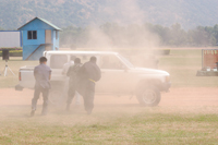 รถกระบะสีดำจอดให้ณรงค์และเพื่อน ตรวจอย่างช้าๆ