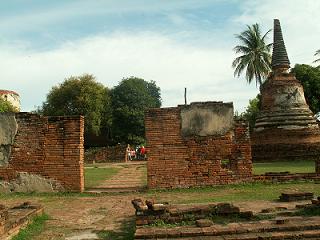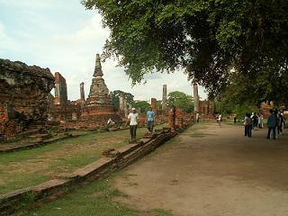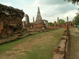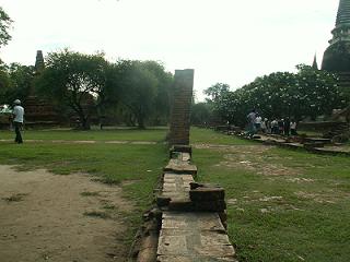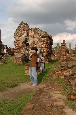เป้าหมายต่อไปคือวัดมงคลบพิตร ตอนที่อยู่บนรถยูโร เขาก็ซาวน์เสียงกันว่าจะนั่งรถรางกันไหม นั่งก็นั่ง คนละ ๒๐ บาท เก็บเงินกันเดี๋ยวนั้นเลย พอรถยูโรจอด รถรางก็มาเทียบให้ขึ้นได้ทันที ยี่สิบบาทไปไม่ไกลนะ รู้งี้ไม่นั่งรถยูโรดีกว่า ทำให้มีเวลาเดินที่วัดพระศรีสรรเพชรนิดเดียวเอง ยังเดินไม่ทั่วเลย ขนาดที่ว่ารองเท้าเจ๊งไปแล้วนะเนี่ย ที่วัดพระศรีสรรเพชรนี้ เราถ่ายรูปค่อนข้างเยอะกว่าวัดใด ๆ เพราะเราต้องการภาพมาประกอบโคลงสี่สุภาพ เราร่างโคลงเอาไว้แล้ว แต่ยังไม่เสร็จสมบูรณ์ อันที่จริงเราเคยเขียนโคลงเกี่ยวกับ อลังการอโยธยามาแล้ว แต่ในความรู้สึก ยังอยากเขียนต่อ อยากเล่า อยากบรรยายอีก ท่าจะเป็นเอามากแฮะ อาการโคลงขึ้นสมองเป็นพัก ๆ