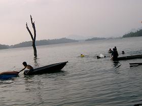 ไงล่ะ .. โช๊ะเชะ เห็นเก๊กท่าดี ที่ไหนได้ ไปไม่ถึงฝั่ง แพแตกเสียแล้ว .. โธ่ งานนี้ มีคนลอยคอขึ้นฝั่งด้วยแฮะ ฮา........
