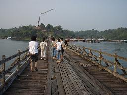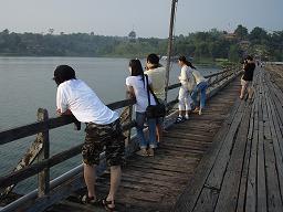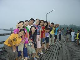 คืนนั้นเราจัดสรรแบ่งที่หลับที่นอนกันอย่างลงตัวที่สุด อากาศดีเชียว ไม่ต้องเปิดพัดลม ยุงก็ไม่เยอะ เช้าวันรุ่งขึ้นยังพอมีเวลาไปเตร็ดเตร่ด้านนอก กินลมชมวิวไปตามเรื่อง จากนั้นก็เดินทางต่อไปยังสังขละบุรี แวะถ่ายรูปกันบนสะพานที่ข้ามแม่น้ำรันตี ก่อนเข้าพีเกสเฮ้าท์ บ้านพักน่ะ ไม่ต้องห่วง จองไว้แล้ววววววว .... สบายล่ะ