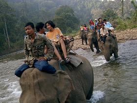 สองหนุ่มบนหลังช้าง นั่งลุ้นตลอดทาง จับภาพทีไร ก้มหน้าทุกที ท้ายสุด สารภาพมาว่า .. เสียวครับ