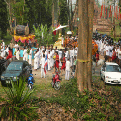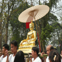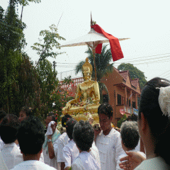 เช้าวันที่ ๑๐ เคลื่อนขบวนเพื่ออัญเชิญไปประดิษฐานอยู่ที่วัดล้านทอง