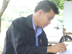 ในภาพคือท่านผู้อำนวยการ(ชัยทัศน์ จ้องสกุลวงศ์)โรงเรียนบ้านท่าระพา กำลังเซ็นชื่อลงในเอกสารขอความอนุเคราะห์