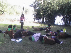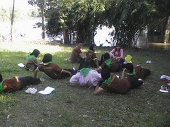 ก่อกองไฟ บางกลุ่มก็จัดกลุ่มร้องเพลงกันสนุกสนาน จึงบอกเด็กๆเสมอเวลาสอน ความสุขหาง่ายนิดเดียว เพียงแต่เราเปิดใจยอมรับและยินดีทำ