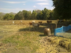 เมื่อเร่งรัด พัฒนา ไร่นาสวน ตามกระบวน หลักการ ด้วยชาญเชี่ยว ความเหนื่อยกาย หายวับ ดับทีเดียว ฤดูเกี่ยว เที่ยวนี้ คงมีทางตื่นขึ้นมา ก่อนไก่ จอบไถเสียม กับควายเตรียม ออกนา ฟ้ามิสาง ดาวรุ่งขึ้น ขอบเขา แลเงาจาง สองเราต่าง ทำนา ก่อนฟ้าแดงจวบแดดร้อน แรงล้า กลับมาบ้าน เตรียมอาหาร ข้าวปลา มาปรุงแต่ง มีน้ำพริก ผักสด ซดน้ำแกง หลังจัดแจง ฟางข้าว ให้เจ้าทุยพอบ่ายตรง ลงสวน พรวนดินใหม่ หญ้ารกใช้ มีดดาย พร้อมใส่ปุ๋ย พริกมะเขือ ข่าตระไคร้ ขุดให้ซุย เพลินเสียงคุย สาลิกา มันพาทีอาหารปลา เป็ดไก่หมู ดูไม่ขาด ชาวตลาด แวะมา หาถึงที่ ขอซื้อผัก ปลาไข่ สิ่งใดมี ได้ไม่กี่ สตางค์ ก็ช่างมันกำลังใจ ไม่ท้อ เรื่องต่อสู้ มีคนอยู่ เคียงใกล้ แต่ในฝัน เมื่อยามเหนื่อย คะนึง คิดถึงกัน แม้ว่าวัน ได้พบ จะลบเลือนพลายแก้วกาญจนบุรี